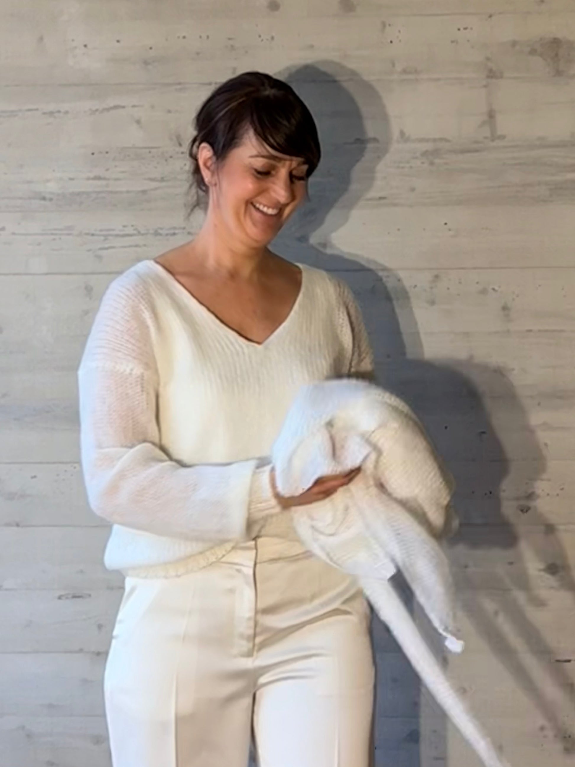 Auf Grund des außerordentlich geringen Gewichts der flauschigen Alpakafaser ist dieser Style unglaublich leicht und lässt sich wie eine wärmende Wolke tragen – von jeder Frau, ganzjährig, immer und überall. Achtung: Suchtfaktor garantiert!